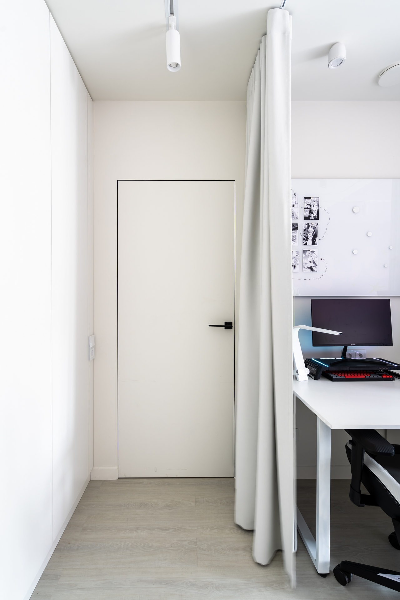 Эта детская родилась по острому запросу на разделение пространства. Дизайнеры «Квартирного вопроса» решили его нестандартным способом, и в новой детской теперь много воздуха, при этом у каждой из 3 сестёр есть своё пространство, а в центре комнаты появилось общее место для совместных игр.