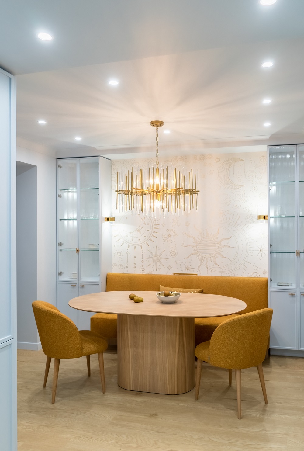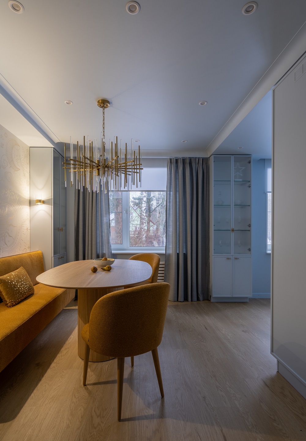 В этом проекте дизайнер «Квартирного вопроса» Татьяна Казанцева активно работала с цветом и светом, чтобы создать уникальное тёплое пространство со сложной архитектурой, но простой эргономикой.